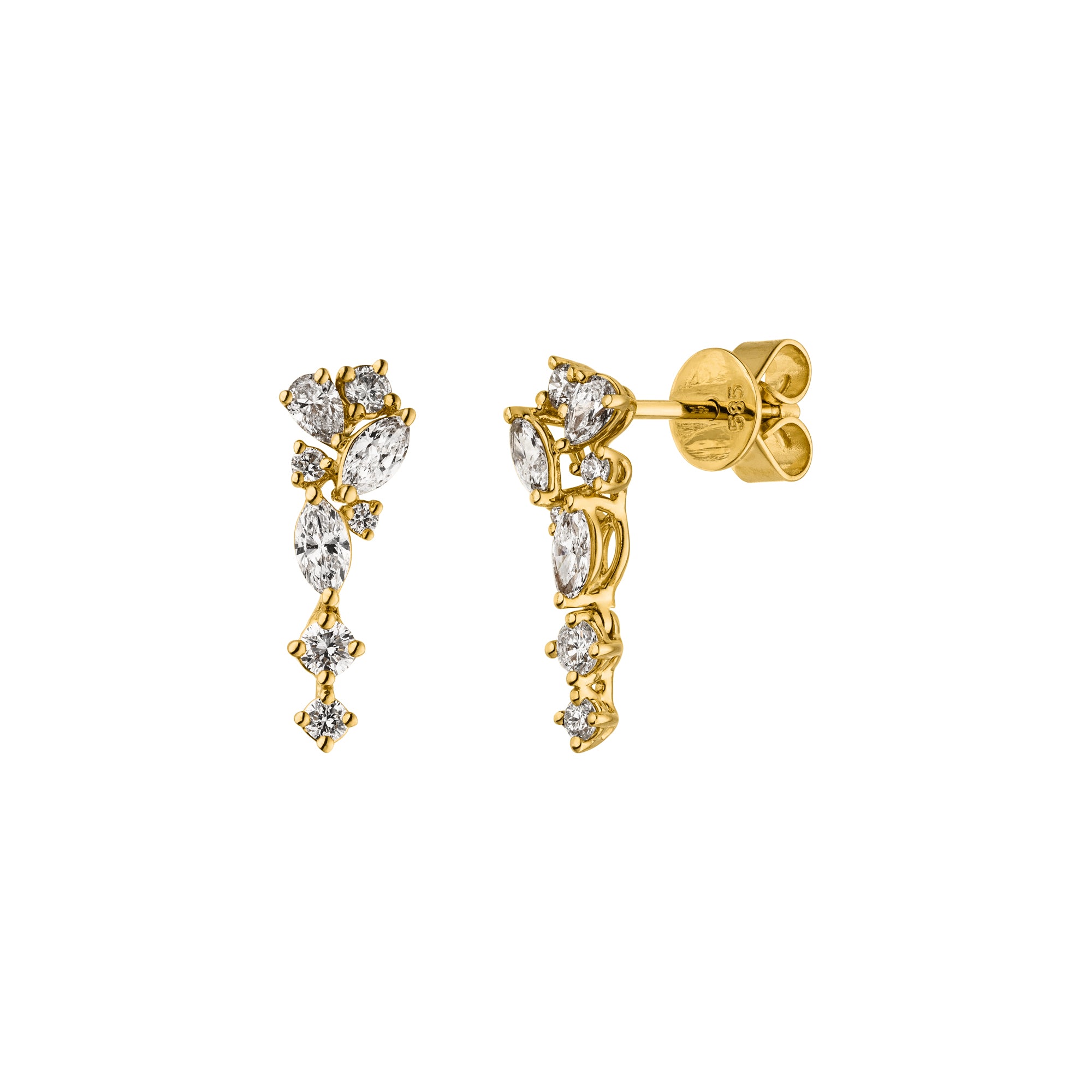 Diese Ohrringe sind in 9K (375er), 14K (585er) oder 18K (750er) Weiss- & Gelbgold, sowie in Lab-Grown oder Natürliche Diamanten erhältlich. Sie können frei nach Präferenz auswählen.